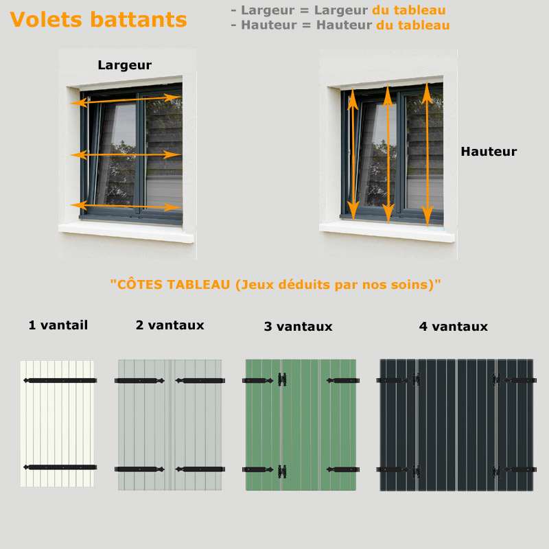 Volet battant sur mesure à 2 vantaux. Idéal pour de la pose en rénovation. Gamme Planéo 28mm ALU extrudé FRANCIAFLEX. Paroi épaisseur 1.4mm. Tous les coloris RAL au choix. Finition par U d'habillage 4 côtés. Pentures et contre-pentures en alu laqué noir ou blanc. Espagnolette ronde (tube alu, embouts alu). Arrêts et butées (H, B). Fabrication Française. Délais de commande 4 à 5 semaines.